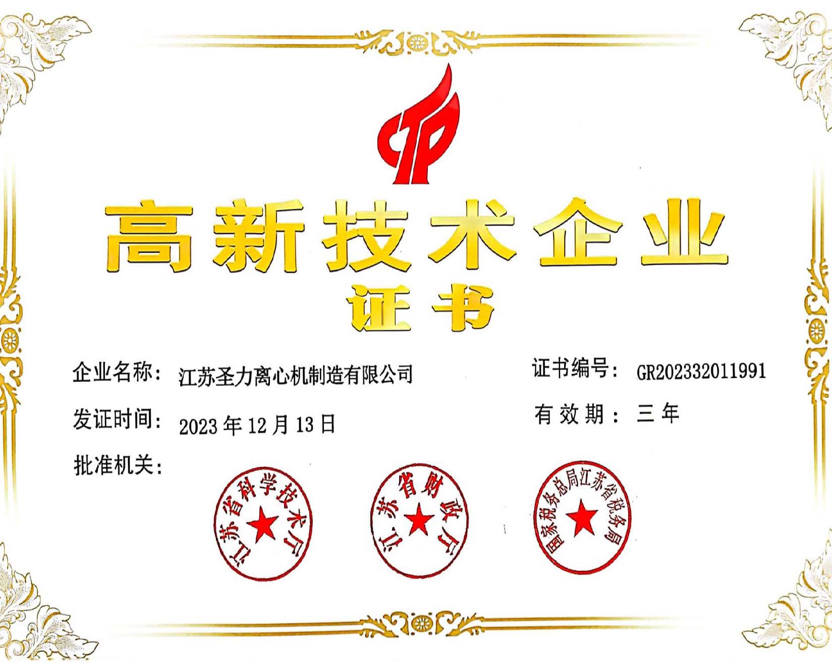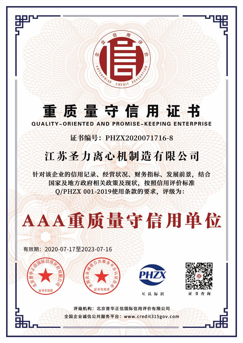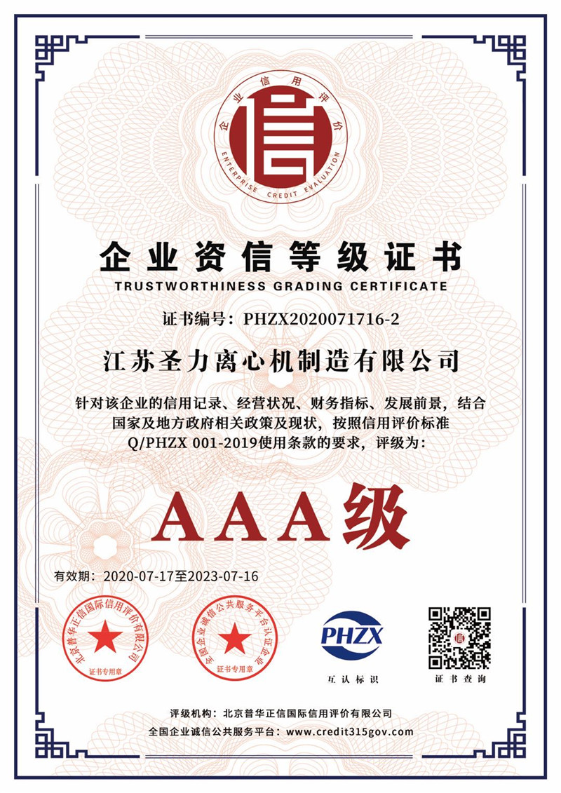 江蘇圣力離心機制造有限公司是國內分離機械行業(yè)中主要的離心機生產企業(yè),對離心機的研究、設計、制造有多年的歷史,擁有齊全的設備、完善的檢測手段。公司已通過IS09000國際質量體系認證、ISO14001環(huán)境管理體系認證、ISO45001:2018職業(yè)健康安全管理體系認證和CE認證,是江蘇省高新技術企業(yè),曾榮獲國家和地方多項榮譽稱號。